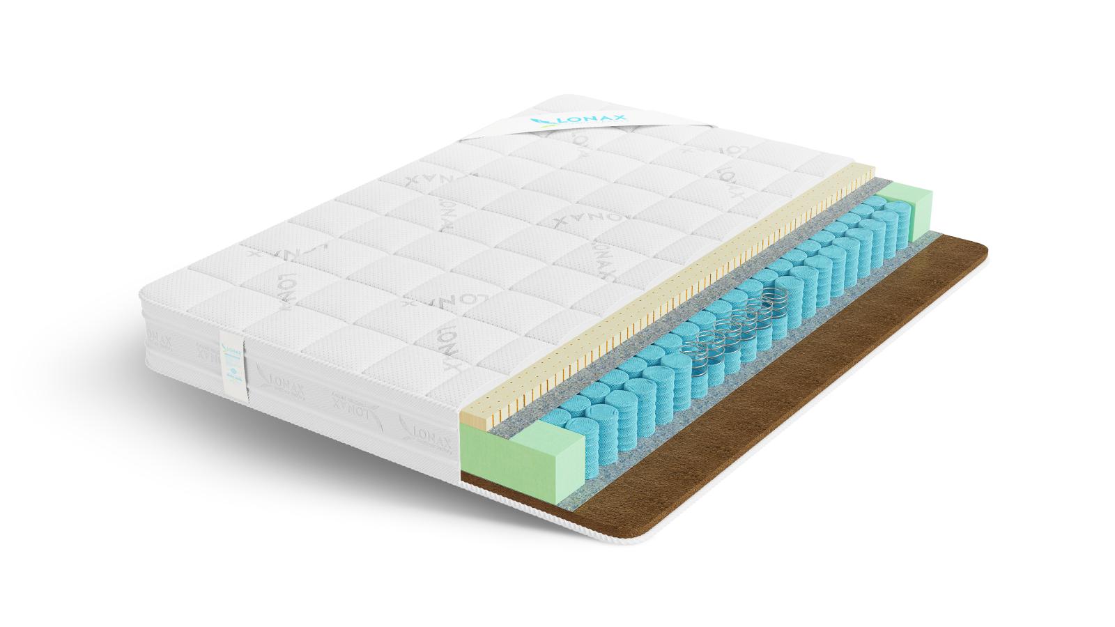Матрас Lonax Latex Cocos Tfk (256 п/м2) — комфорт и поддержка, которые вы сразу почувствуете. Высота 20 см, двусторонняя конструкция «мягкий / жёсткий» и продуманные натуральные и технологичные слои создают идеальное спальное место для тех, кто ценит здоровье позвоночника и качественный сон.