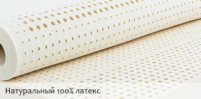 Натуральный латекс придает матрасу дополнительный комфорт и мягкость. Лист латекса имеет перфорацию по всей поверхности (круглые отверстия). Перфорация необходима для отвода теплого воздуха, естественной вентиляции. Натуральный латекс очень долговечный материал, способен прослужить не теряя своих свойств более 20 лет. В Otto Bayer Bronto натуральный латекс представлен слоем 3 см. с одной стороны матраса.