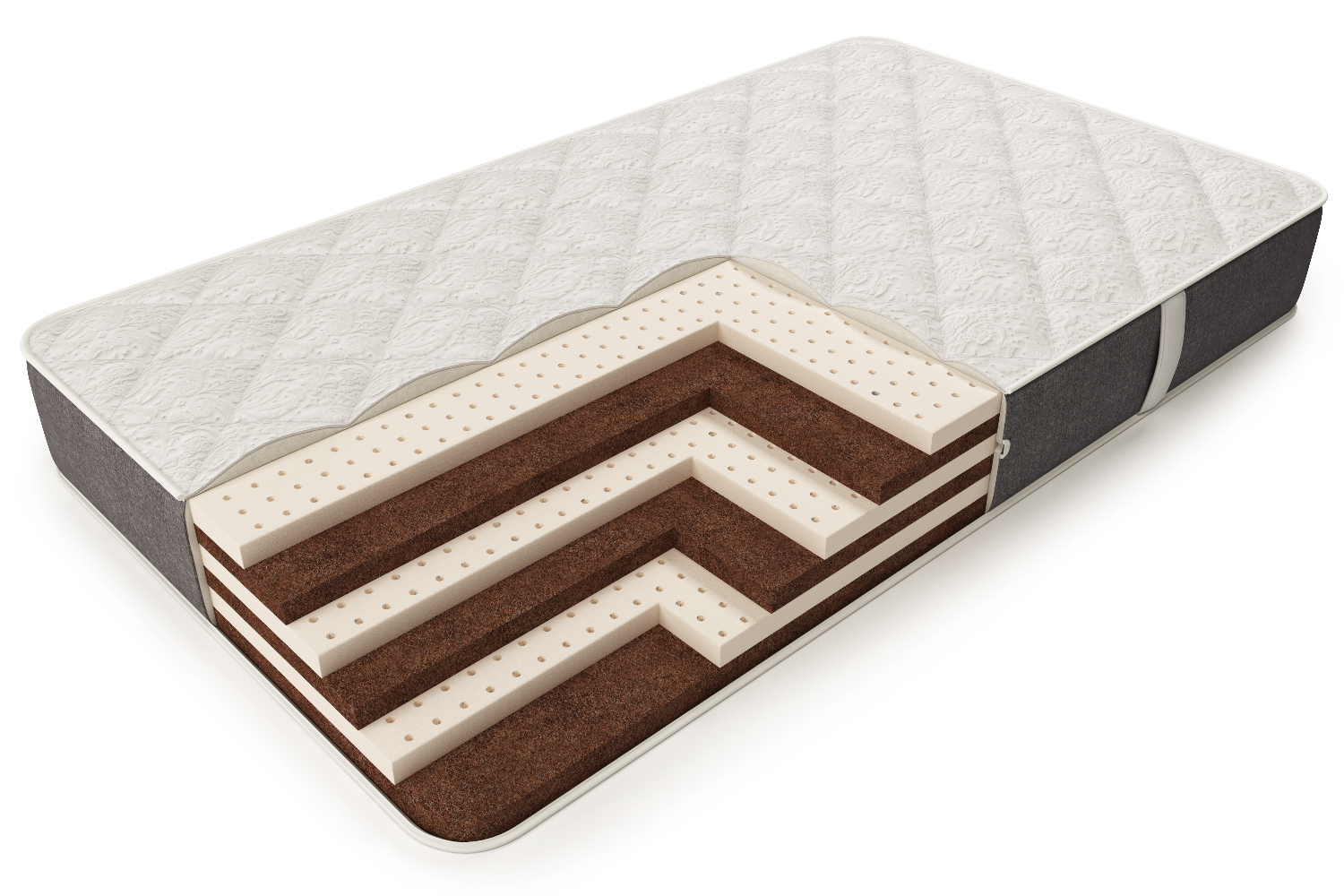 Матрас “Nature Coco-Lattice” – флагман 100% натуральных матрасов. Чередование слоев из жесткой кокосовой койры и упругого натурального латекса обеспечивает правильную поддержку тела отдыхающего. Натуральный латекс “сглаживает” жесткость койры, не давая матрасу быть слишком жестким. Кокосовая койра в свою очередь принимает нагрузку на себя, не проминаясь и организует правильную поддержку тела, растягивая позвоночник. Кроме того одним из преимуществ Coco-Lattice является разная жесткость сторон – с одной стороны внешним слоем является 3см. натурального латекса, с другой – 3см. кокосовой койры. Данная особенность позволит самостоятельно отрегулировать комфортный для Вас уровень жесткости – просто перевернув матрас на другую сторону.
