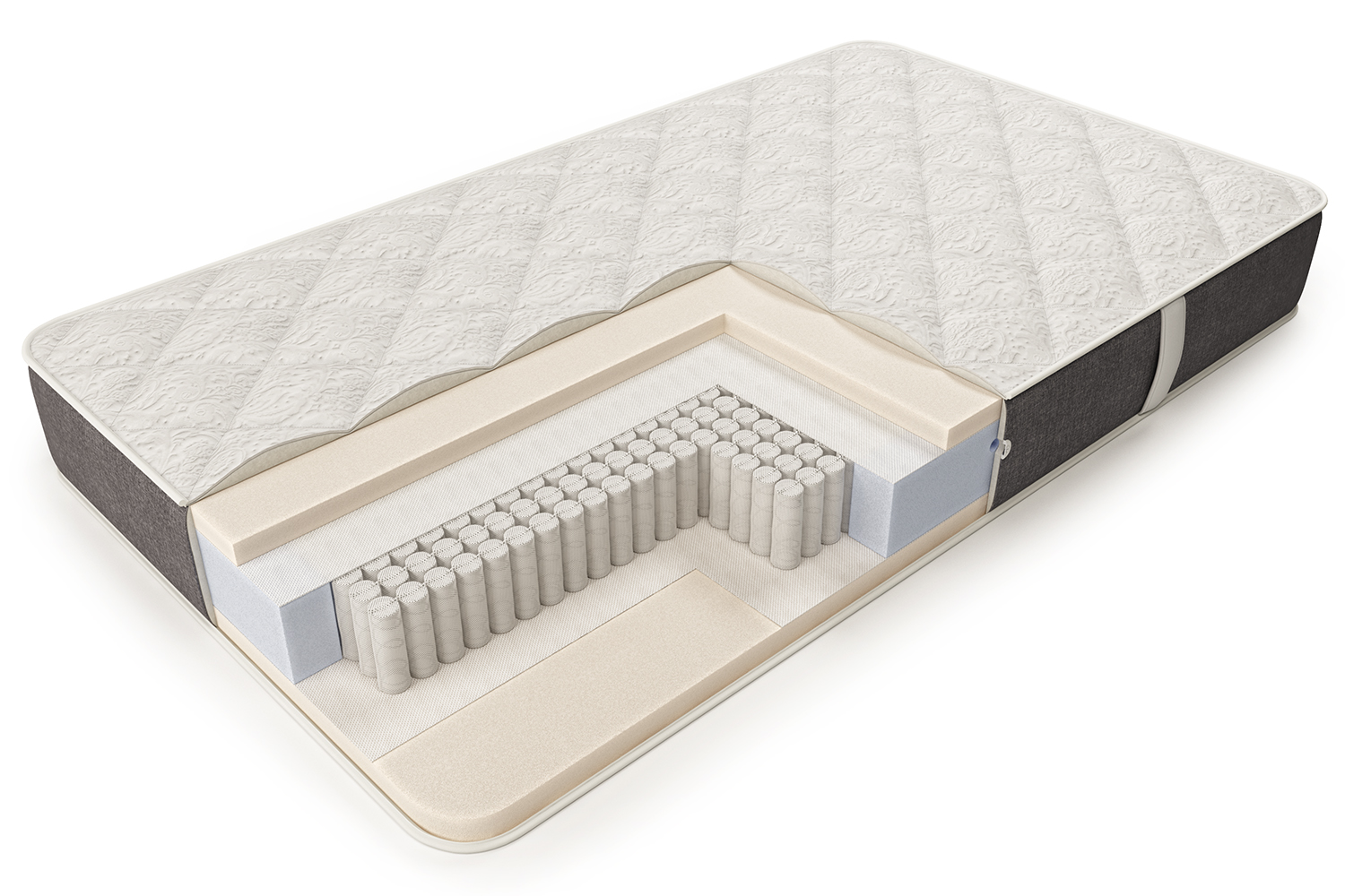Плотность пружин в Блоке – 520 штук на м2 или 1040 штук на спальное место (за спальное место принято считать 100 см. на 200 см.). Каждая пружинка помещена в отдельный стаканчик из спанбонда. Такое разделение позволяет пружинам работать автономно друг от друга, подстраиваясь под тело спящего. Таким образом создается правильная анатомическая поддержка.