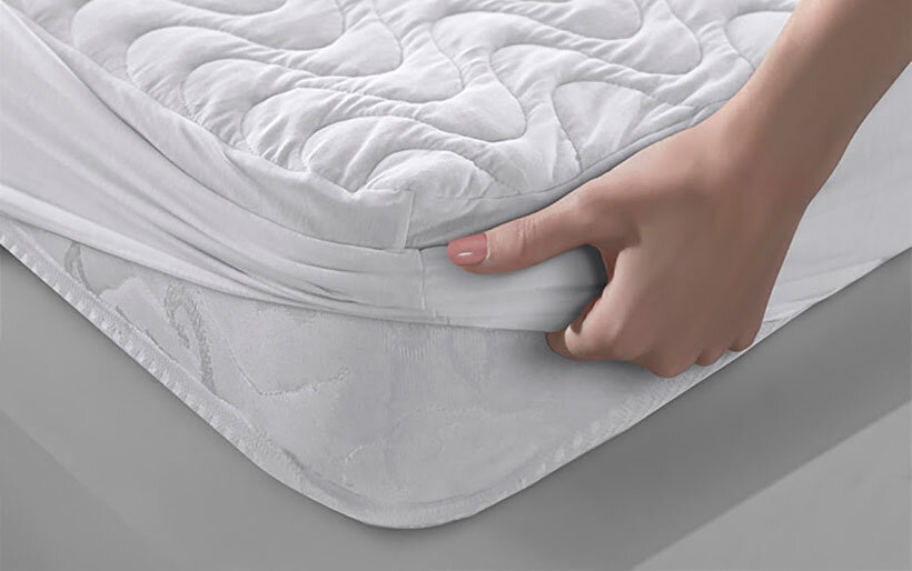 По всему периметру наматрасника в окантовку вшита резинка, которая стягивает наматрасник и надежно крепит к матрасу
